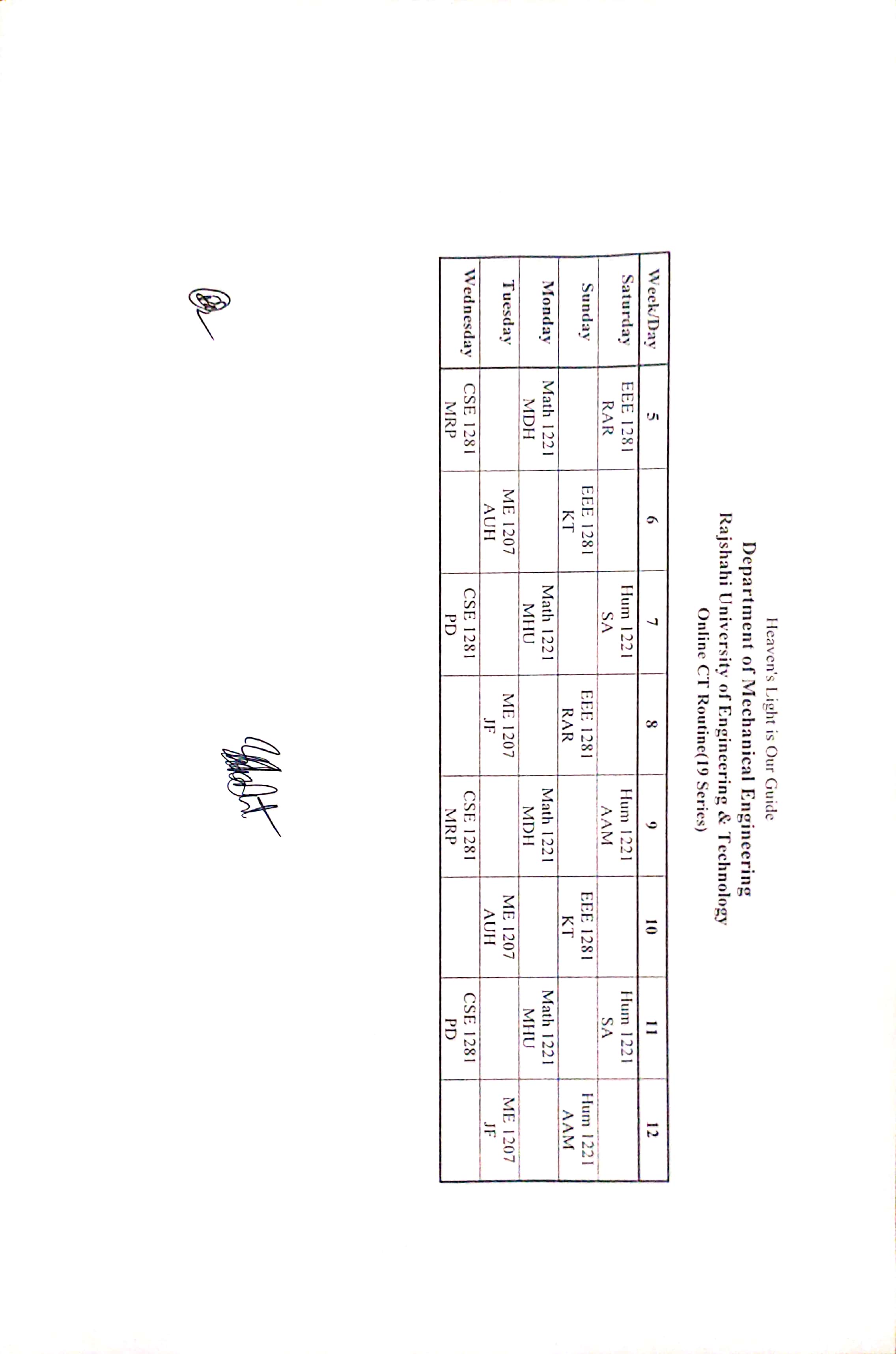 “Class Routine for the Last Class of 4th Year Even Semester 2020 Series of ECE Department”